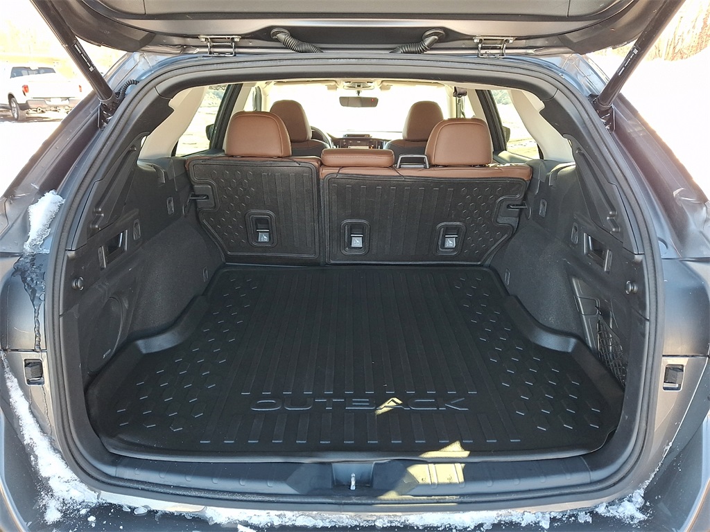 Standard Model, 12 Speakers, 4-Wheel Disc Brakes, 4.111 Axle Ratio, ABS brakes, Air Conditioning, All-Weather Floor Liners, Alloy wheels, AM/FM radio: SiriusXM, Auto High-beam Headlights, Auto-dimming Rear-View mirror, Automatic temperature control, Brake assist, Bumpers: body-color, Cargo Net, Compass, Dome Light LED Upgrade, Driver door bin, Driver vanity mirror, Dual front impact airbags, Dual front side impact airbags, Electronic Stability Control, Emergency communication system: STARLINK Safety and Security (Subscription Required), Exterior Parking Camera Rear, Four wheel independent suspension, Front anti-roll bar, Front Bucket Seats, Front Center Armrest w/Storage, Front dual zone A/C, Front fog lights, Front reading lights, Fully automatic headlights, Garage door transmitter: HomeLink, harman/kardon Surround Sound Speaker System, harman/kardon Speakers, Heated & Ventilated Front Bucket Seats, Heated door mirrors, Heated front seats, Heated rear seats, Heated steering wheel, HVAC memory, Illuminated entry, Knee airbag, Leather steering wheel, Low tire pressure warning, Magnetite Gray Metallic Body Side Molding, Magnetite Gray Metallic Door Edge Guards, Memory seat, Nappa Leather-Trimmed Upholstery, Navigation System, Occupant sensing airbag, Outside temperature display, Overhead airbag, Overhead console, Panic alarm, Passenger door bin, Passenger vanity mirror, Power door mirrors, Power driver seat, Power Liftgate, Power moonroof, Power passenger seat, Power steering, Power windows, Radio: Subaru STARLINK 11.6" Multimedia Nav System, Rear anti-roll bar, Rear Seat Back Protector, Rear seat center armrest, Rear window defroster, Rear window wiper, Remote CD player, Remote keyless entry, Roof rack, Security system, Speed control, Speed-sensing steering, Split folding rear seat, Spoiler, STARLINK/Apple CarPlay/Android Auto, Steering wheel mounted audio controls, Steering Wheel Paddle Shift Control Switches, Tachometer, Telescoping steering wheel, Tilt steering wheel, Traction control, Trip computer, Turn signal indicator mirrors, Variably intermittent wipers, Ventilated front seats, Wheels: 18" x 7J Black Aluminum Alloy, and Wireless Charger. Recent Arrival! 23/30 City/Highway MPG