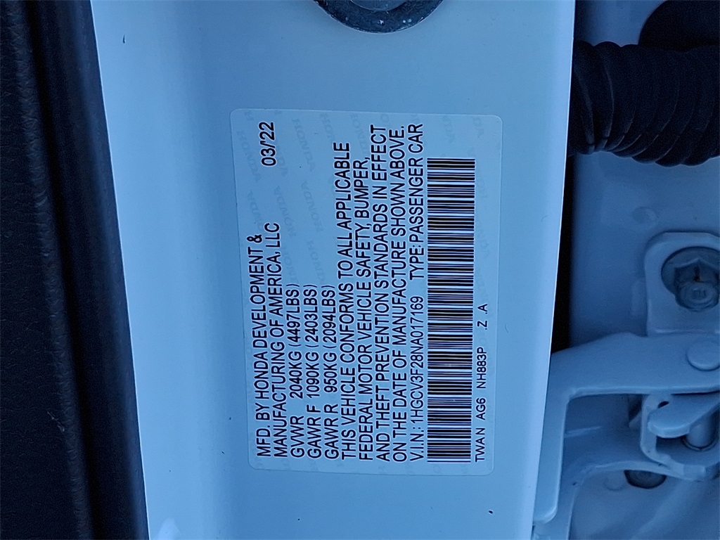 - VIN : 1HGCV3F28NA017169