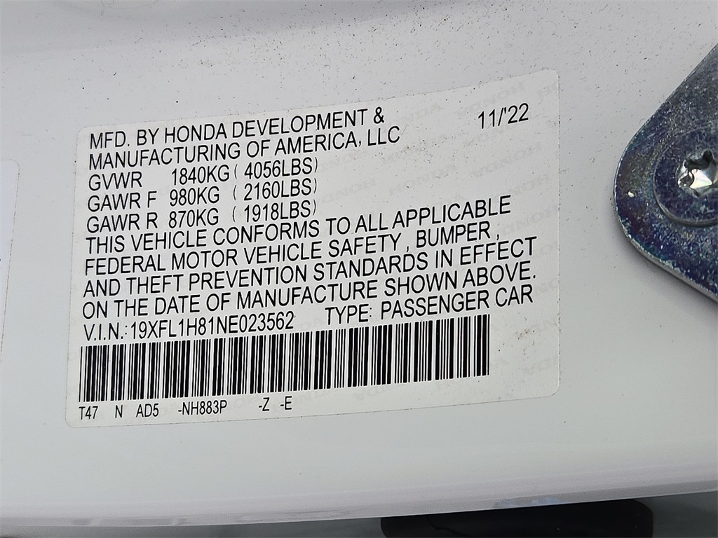 - VIN : 19XFL1H81NE023562