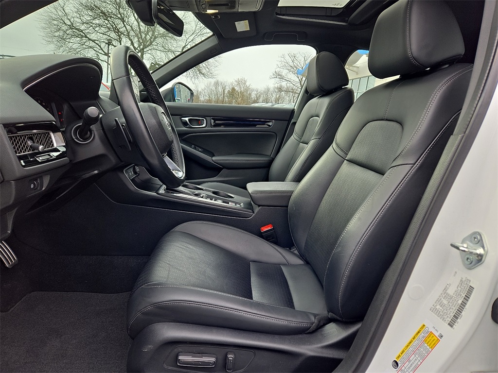 Platinum White Pearl 2022 Honda Civic Sport Touring 1.5L I4 DOHC 16V Black w/Leather Seat Trim.