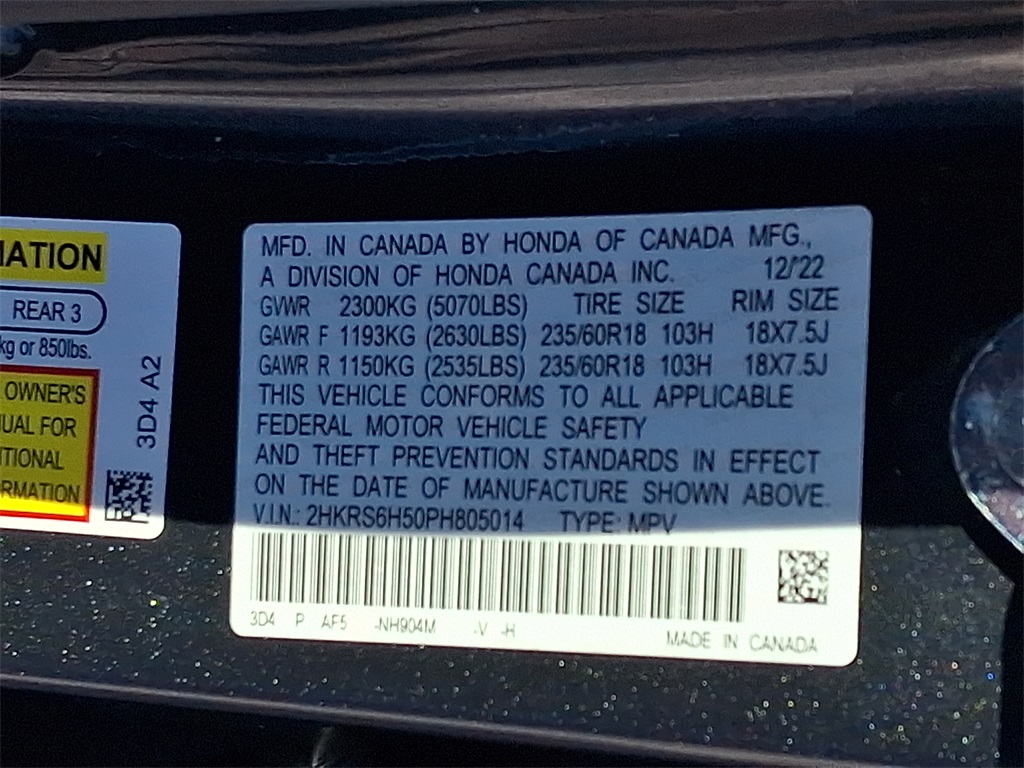 - VIN : 2HKRS6H50PH805014