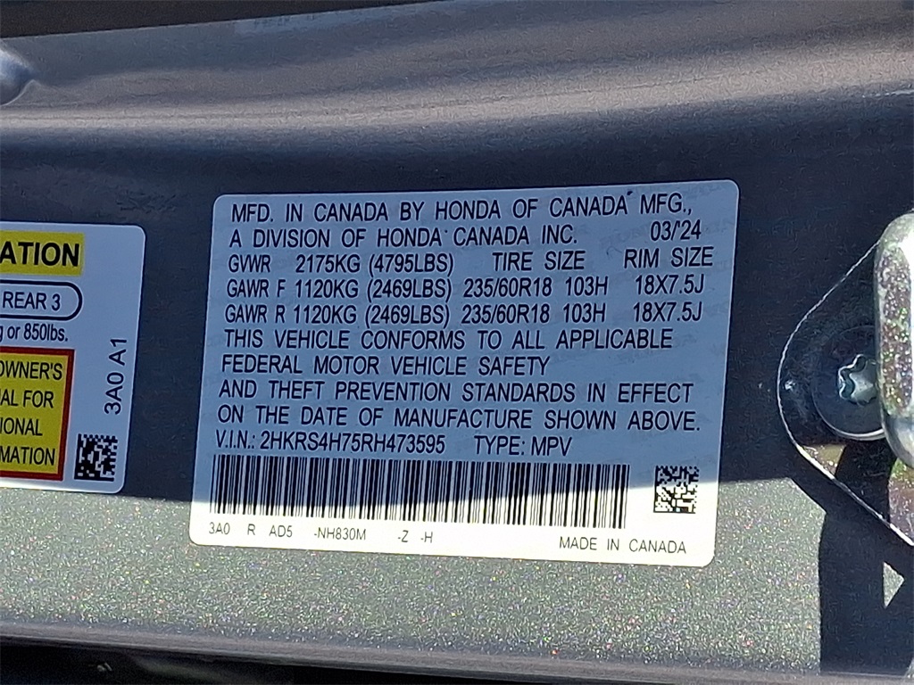 - VIN : 2HKRS4H75RH473595