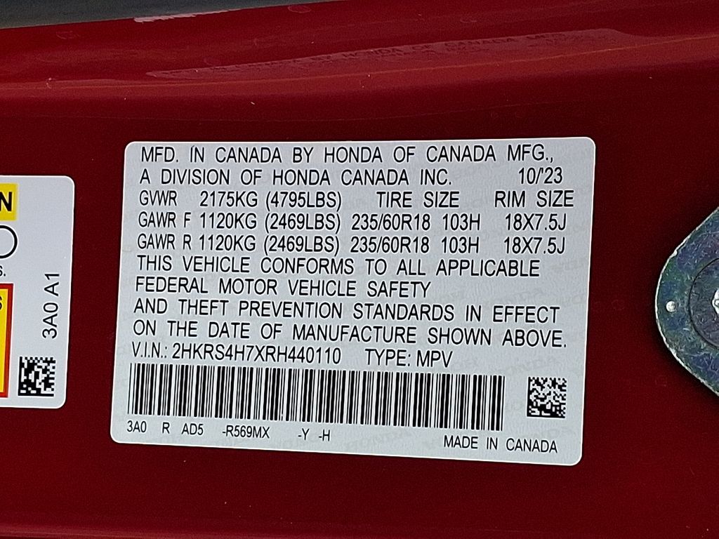 - VIN : 2HKRS4H7XRH440110