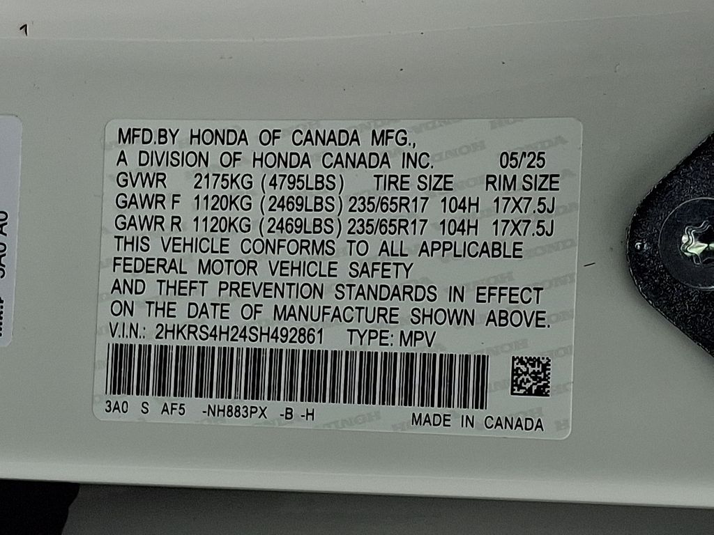 - VIN : 2HKRS4H24SH492861