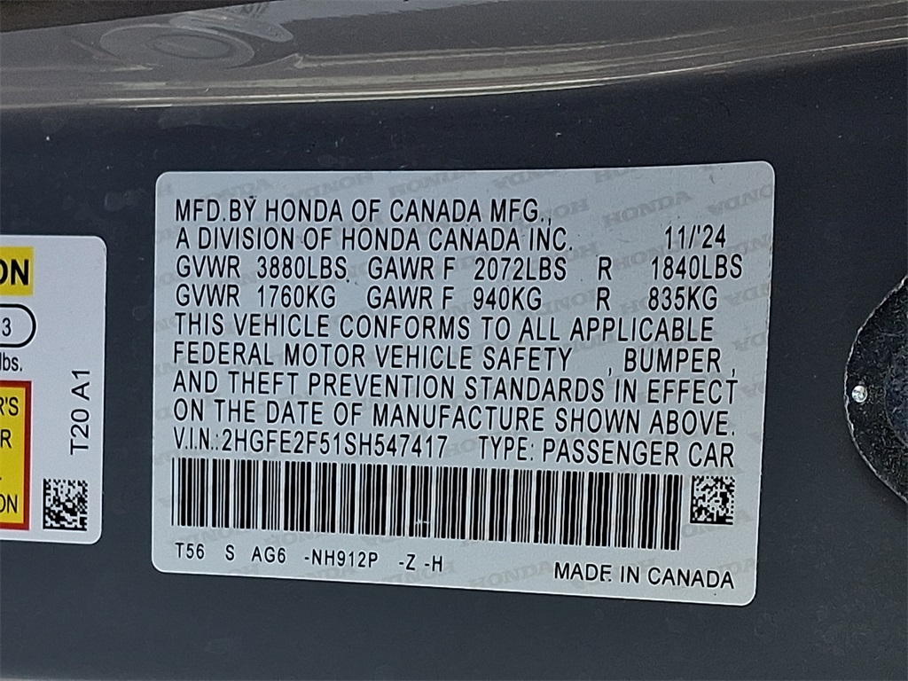 - VIN : 2HGFE2F51SH547417